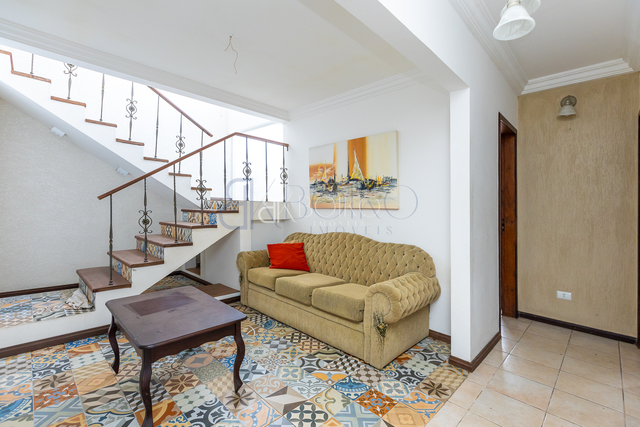 Escadas, sala intima, banheiro social.