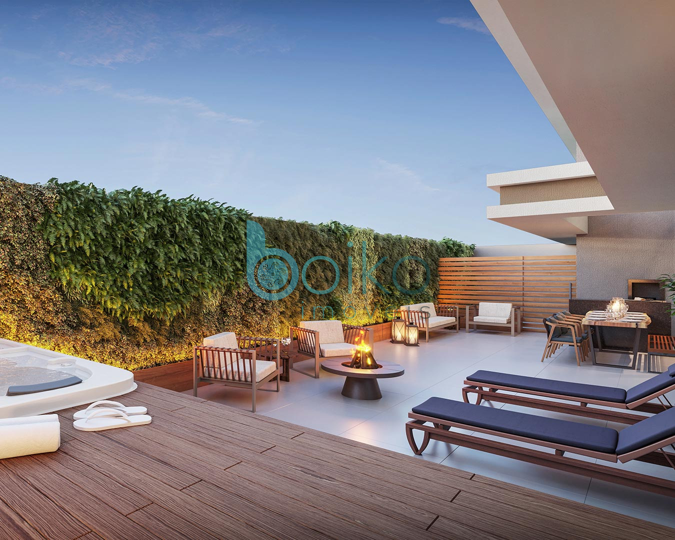São 191,05 m² de área privativa, sendo 138,69 m² compostos por ambientes amplos, iluminados, ventilados, pé direito alto e acabamentos sofisticados e modernos, acrescidos de 52,36 m² de terraço descoberto.
