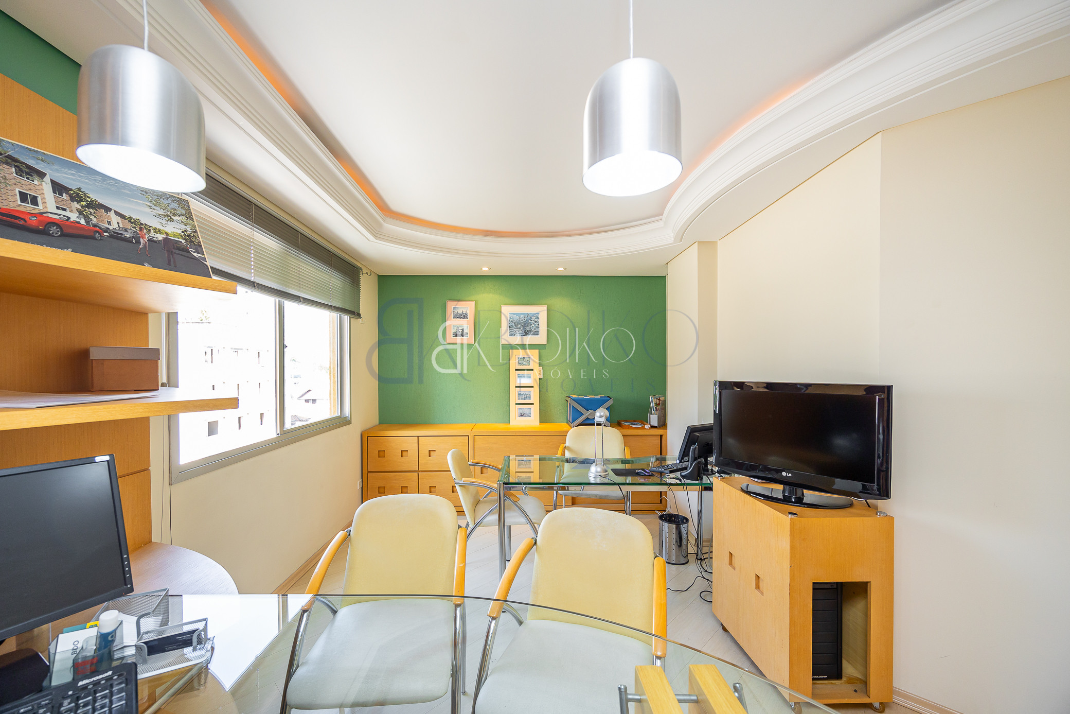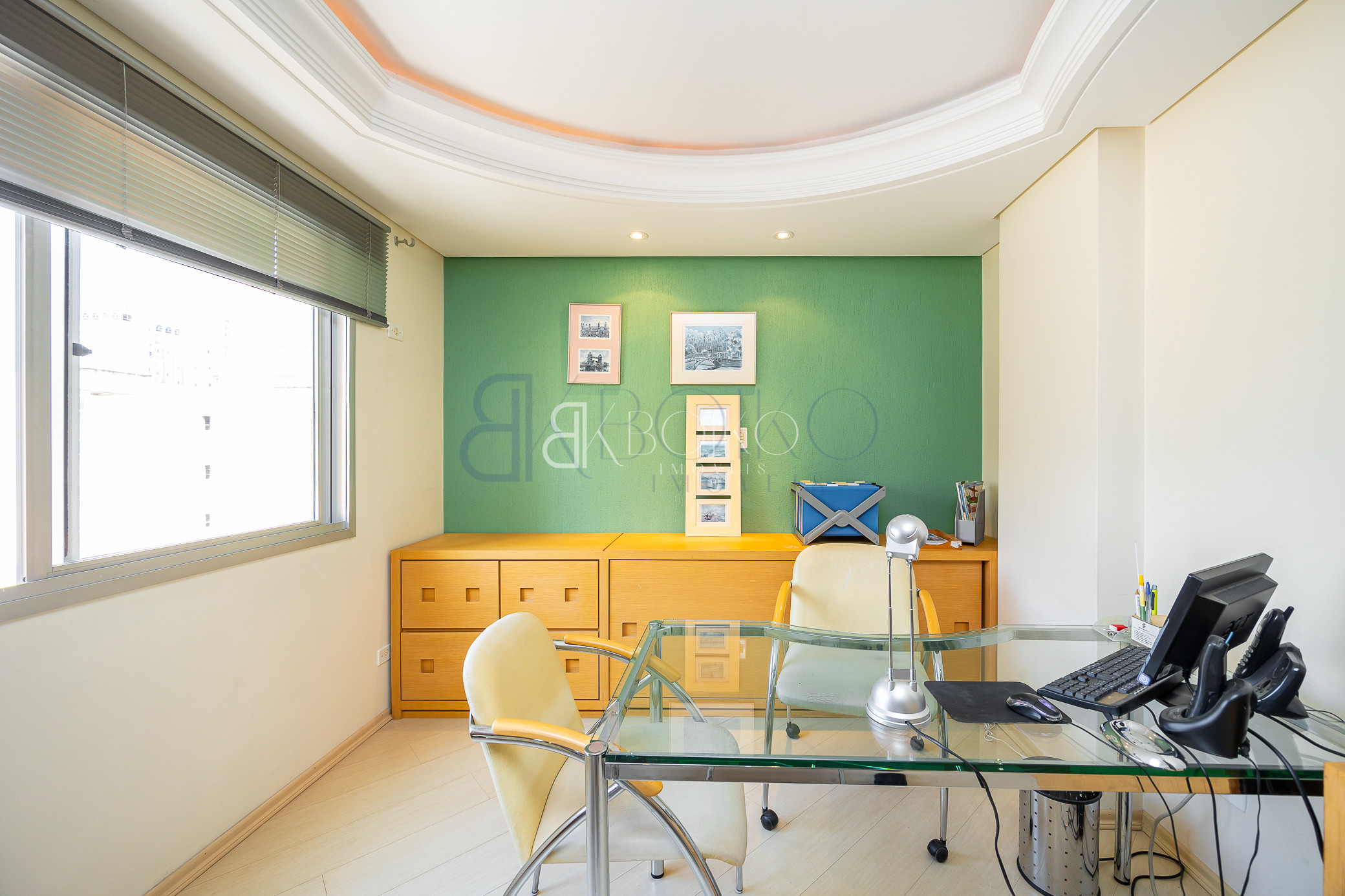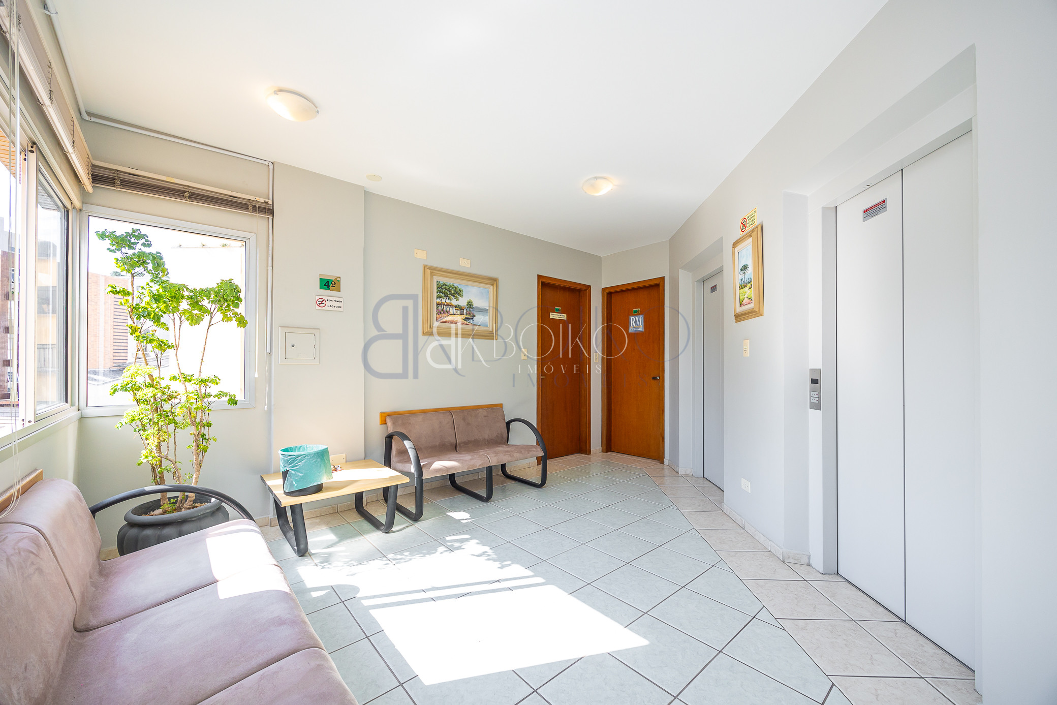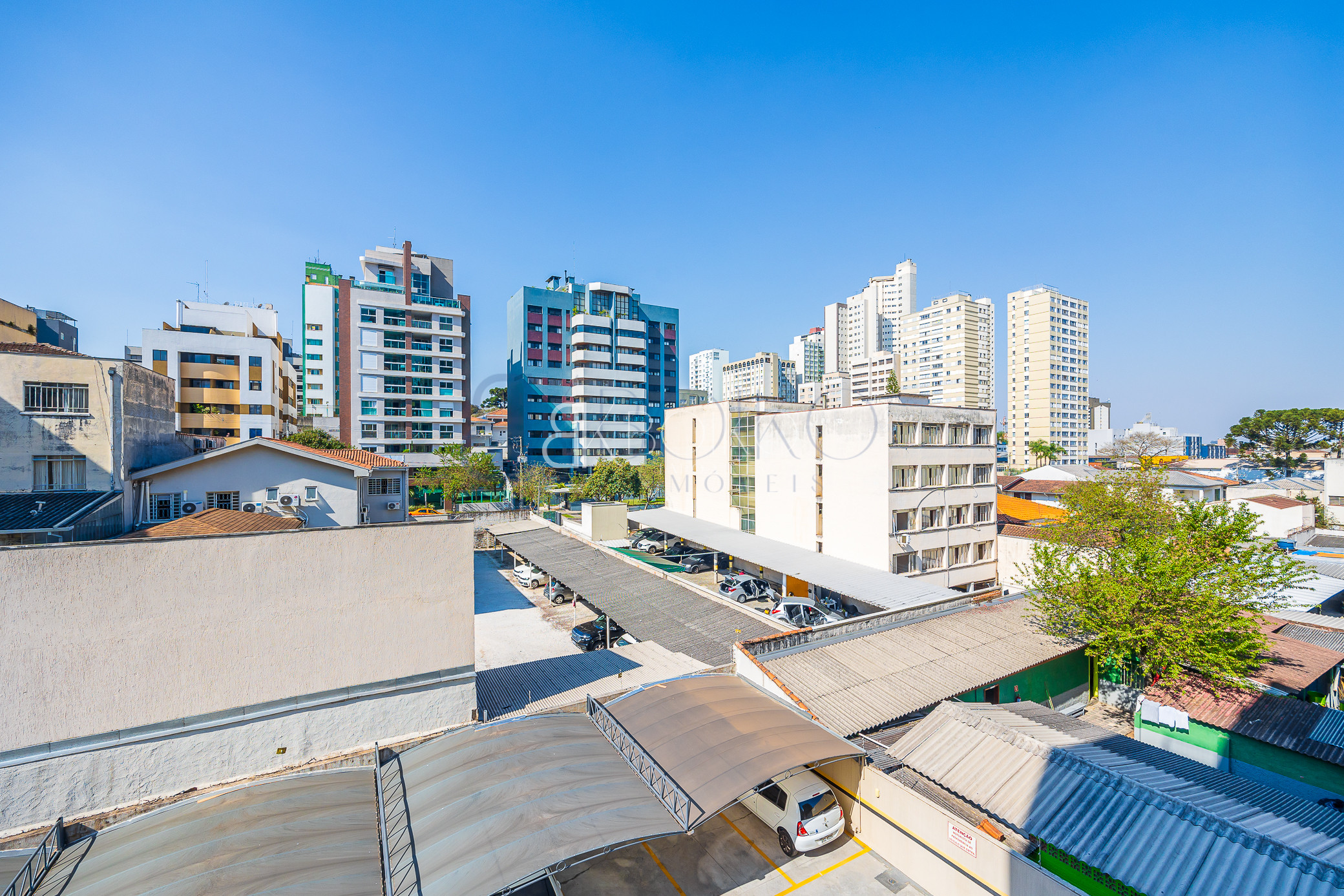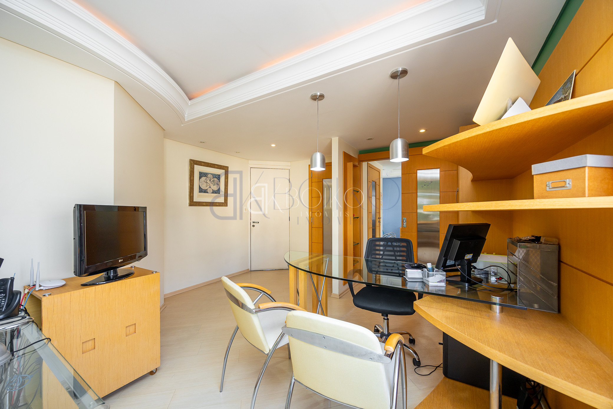 Conjunto comercial no quarto andar, com três salas, banheiro, copa, 1 vaga de garagem.