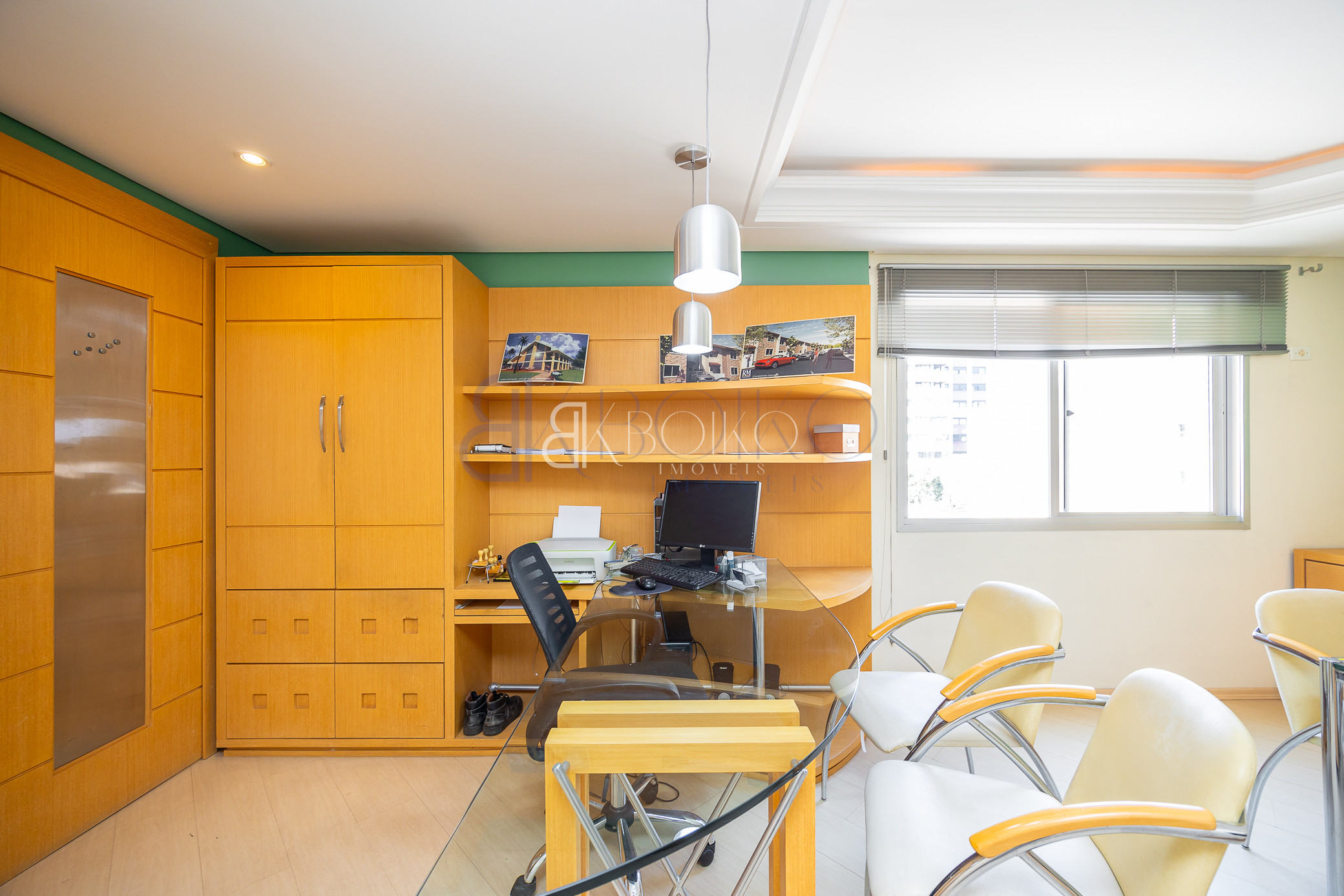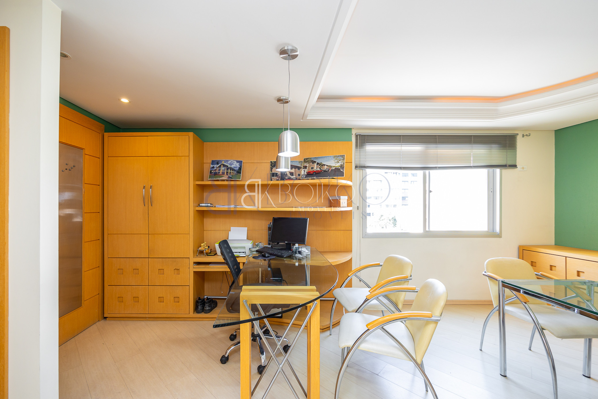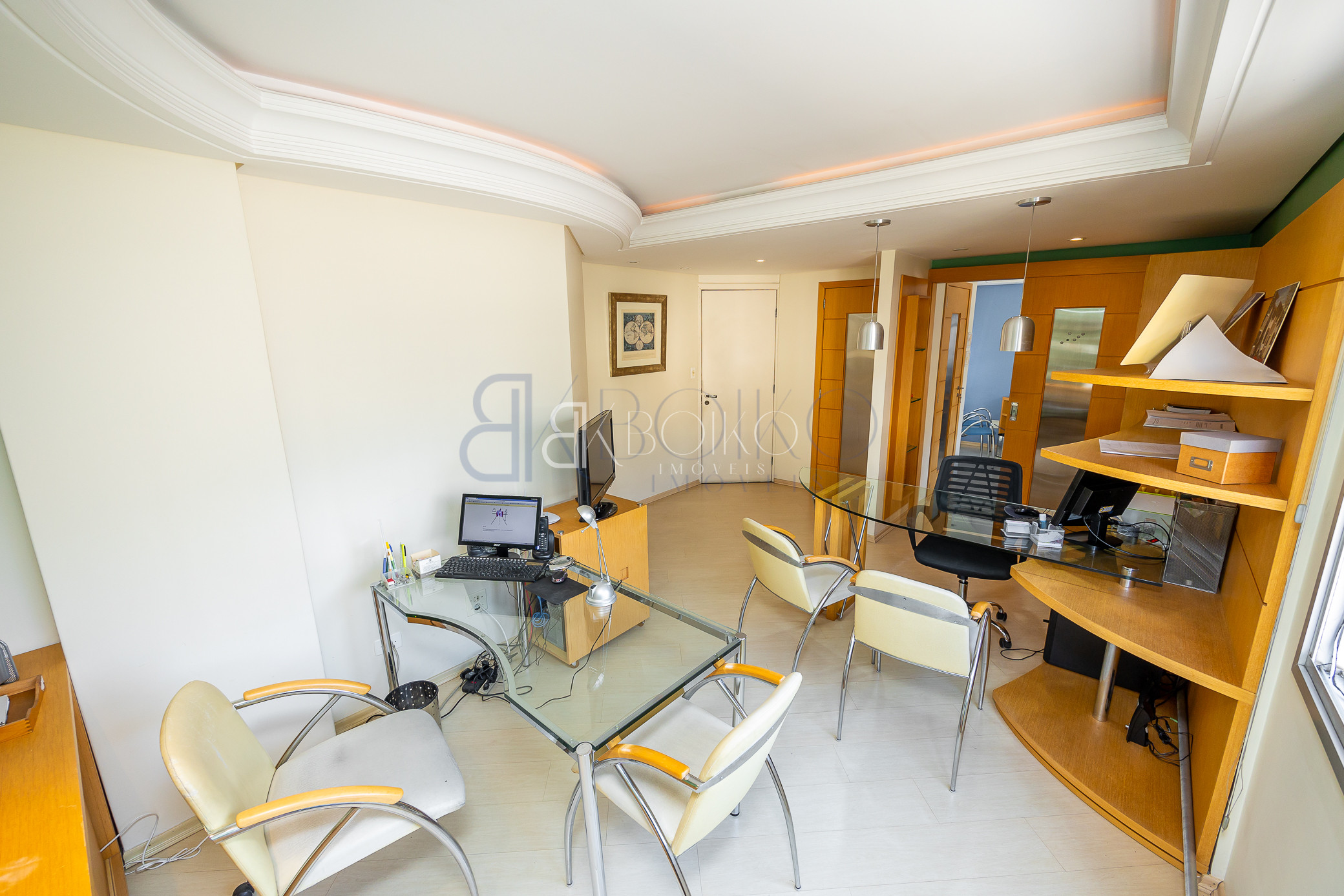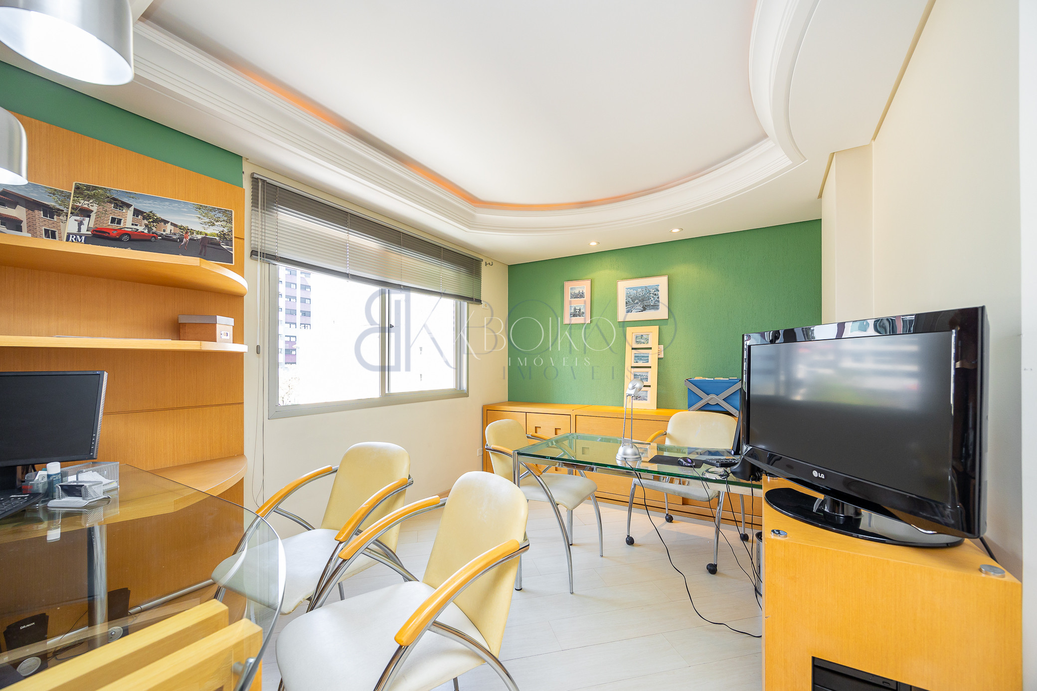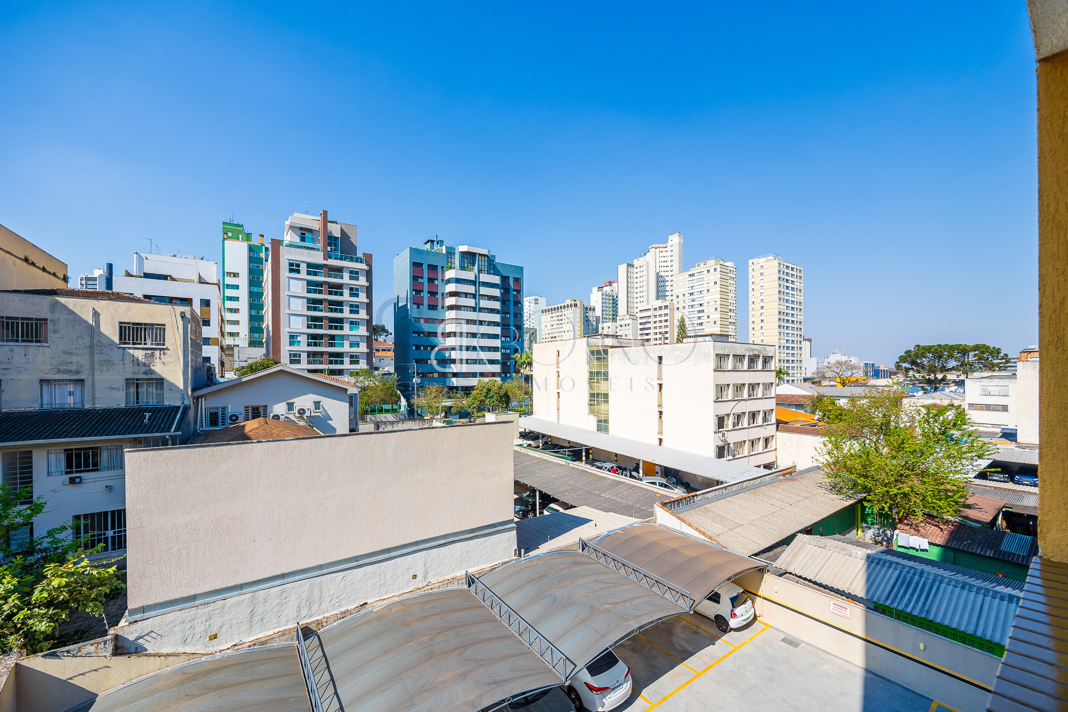 Conjunto comercial no quarto andar, com três salas, banheiro, copa, 1 vaga de garagem.