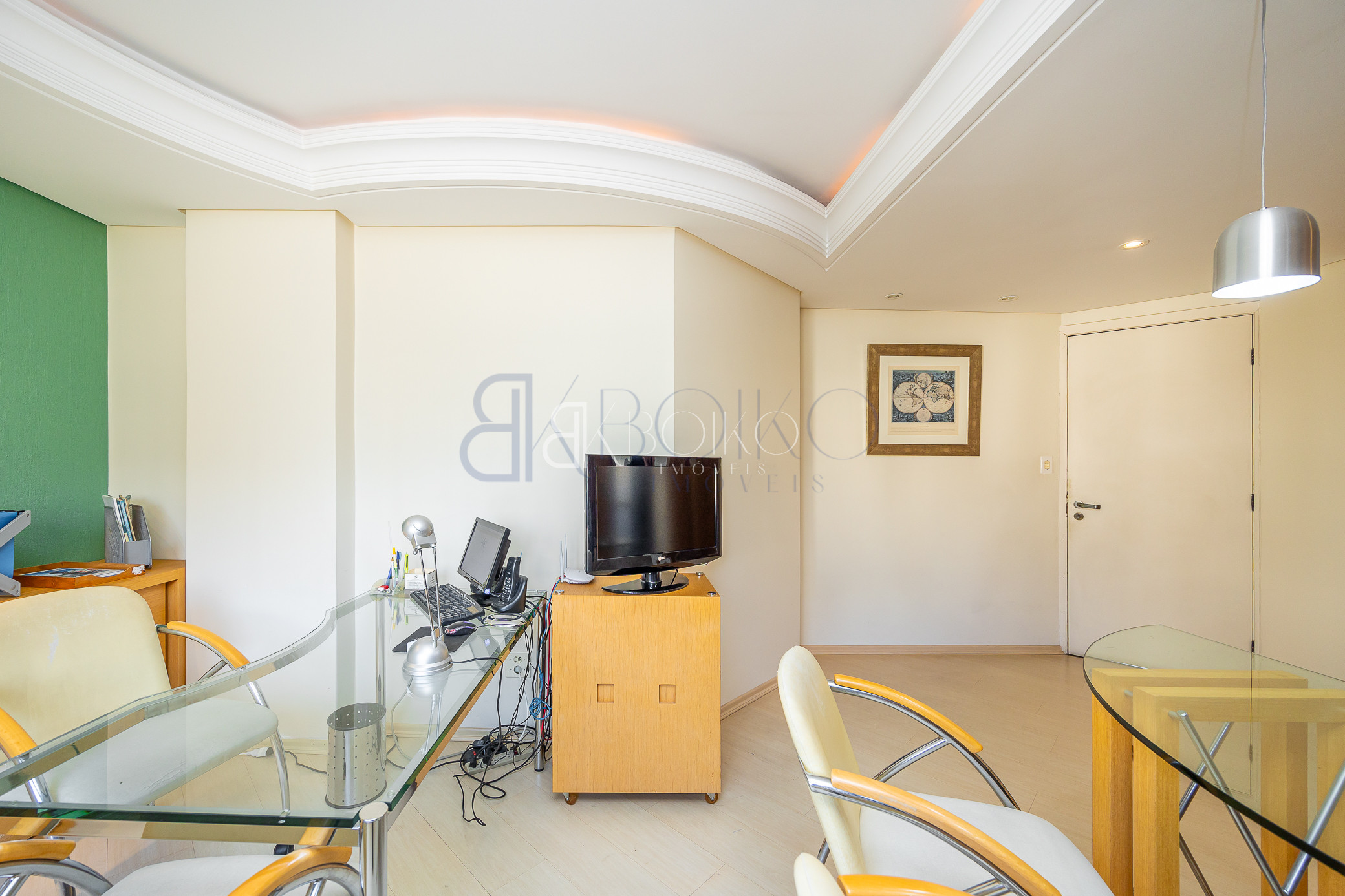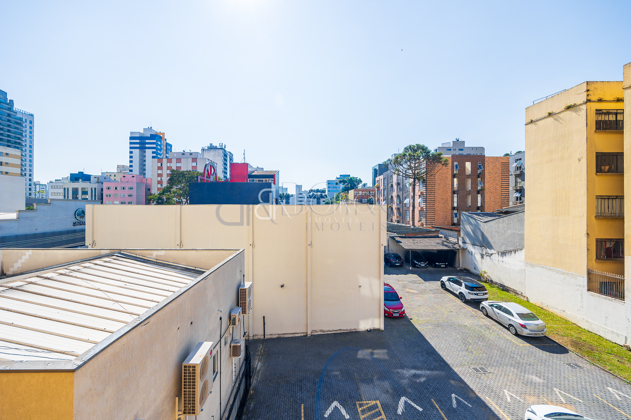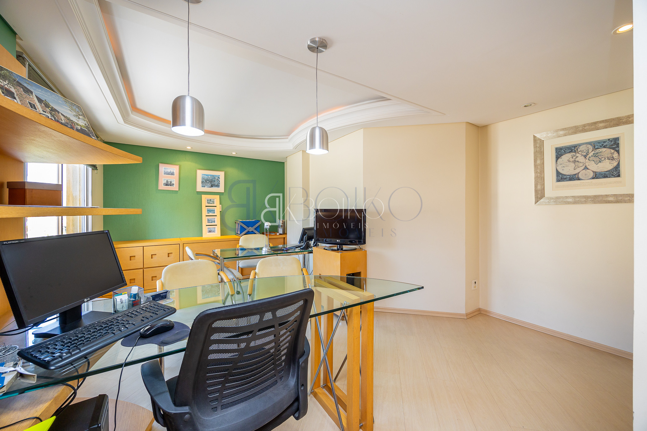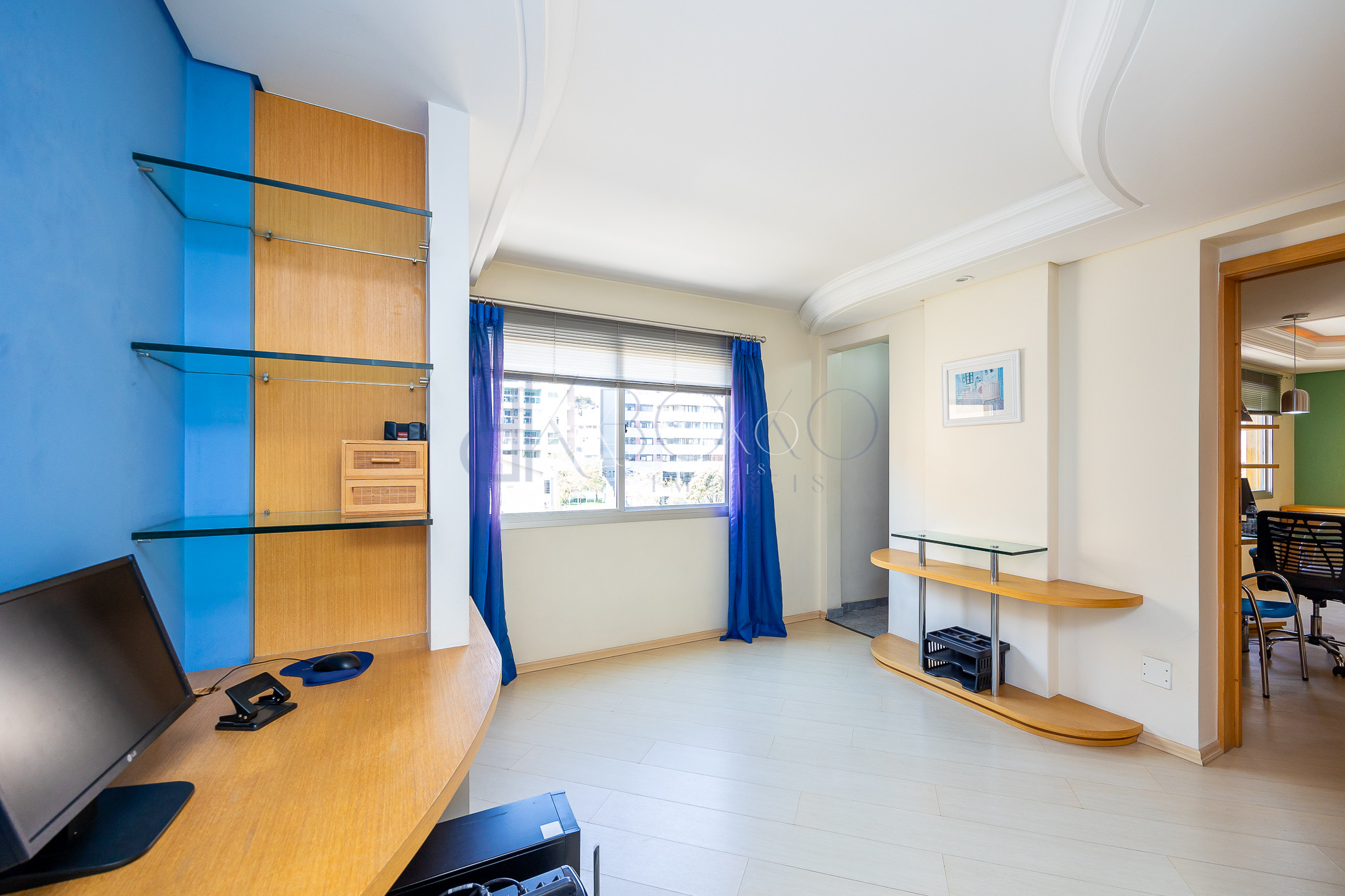Conjunto comercial no quarto andar, com três salas, banheiro, copa, 1 vaga de garagem.