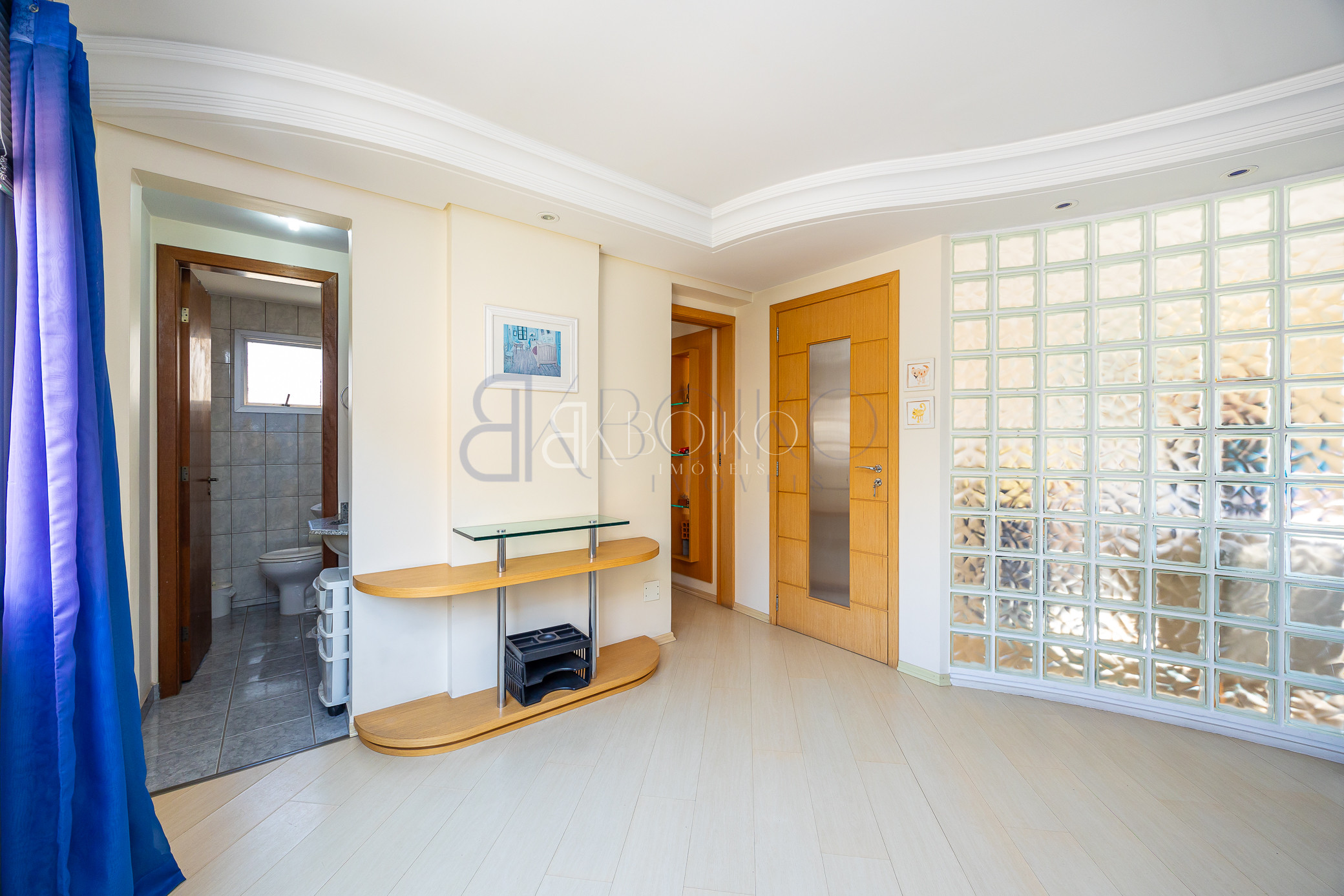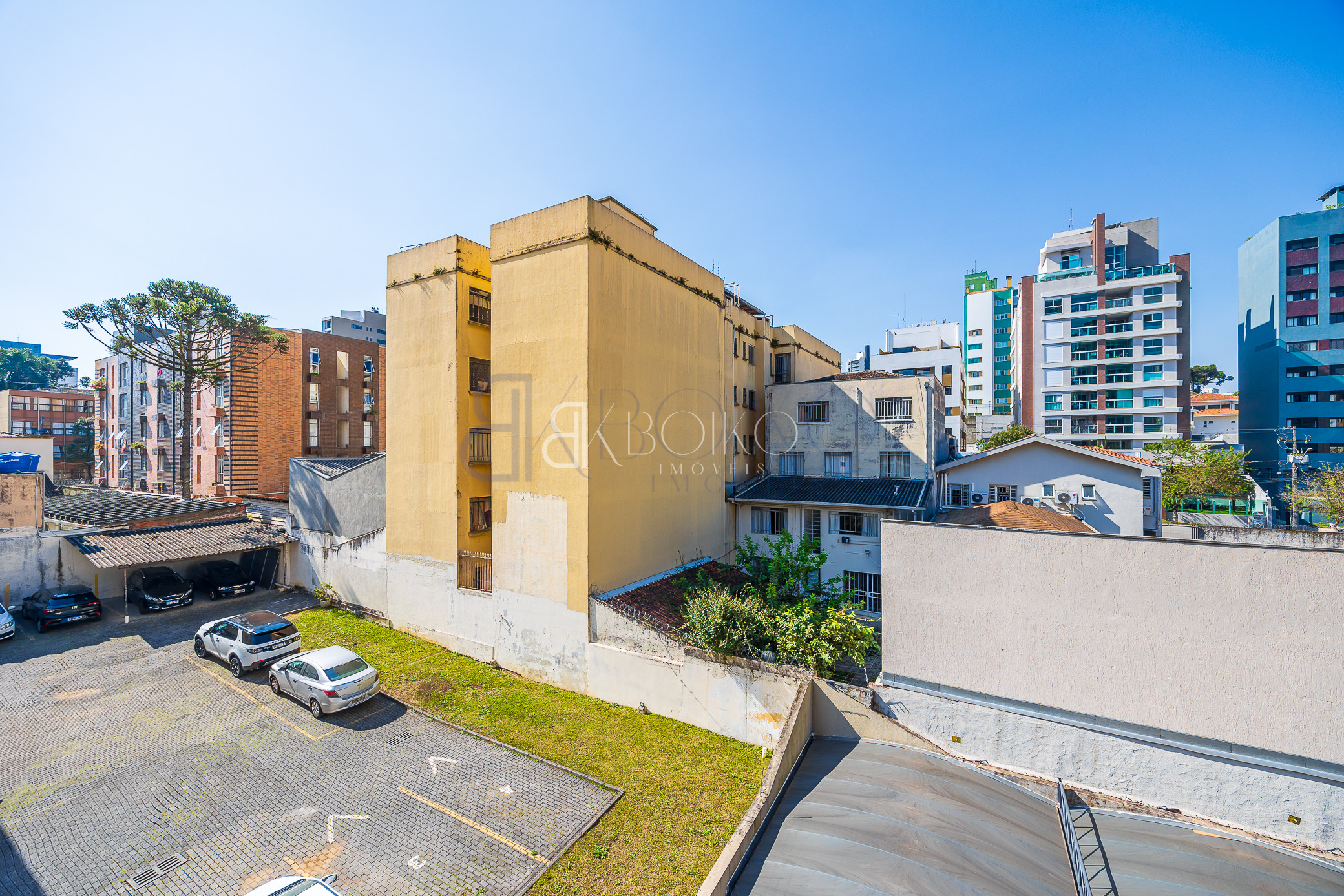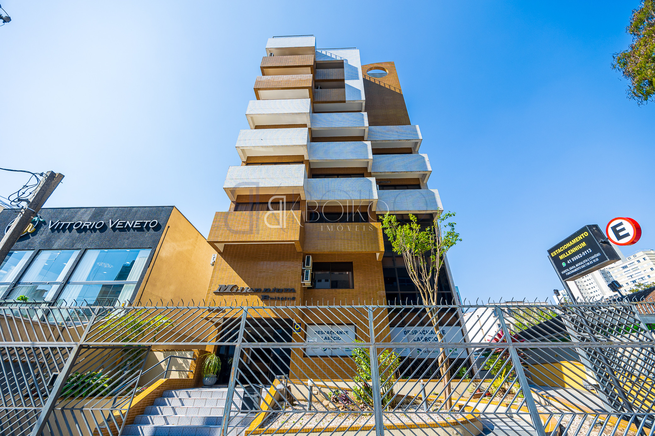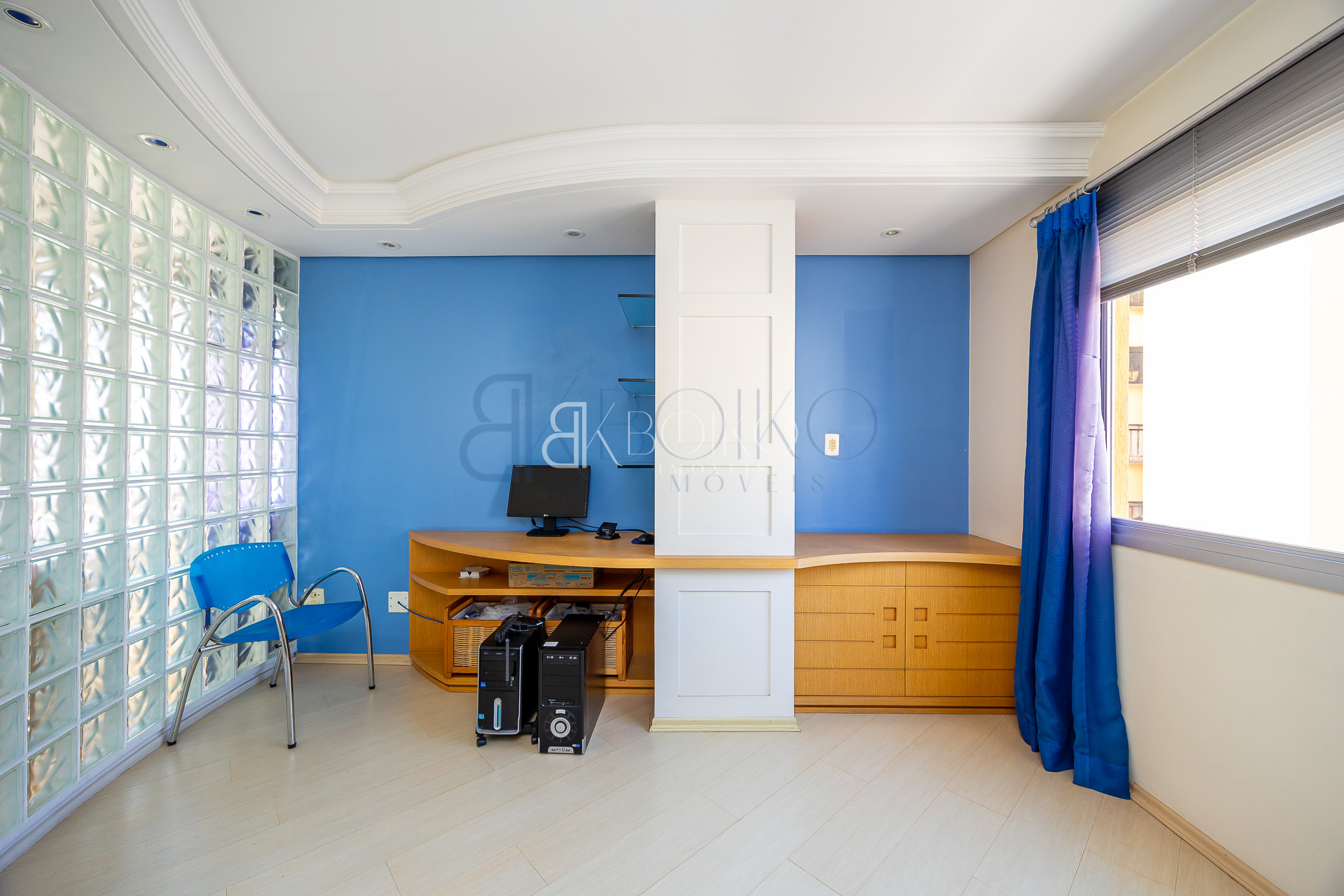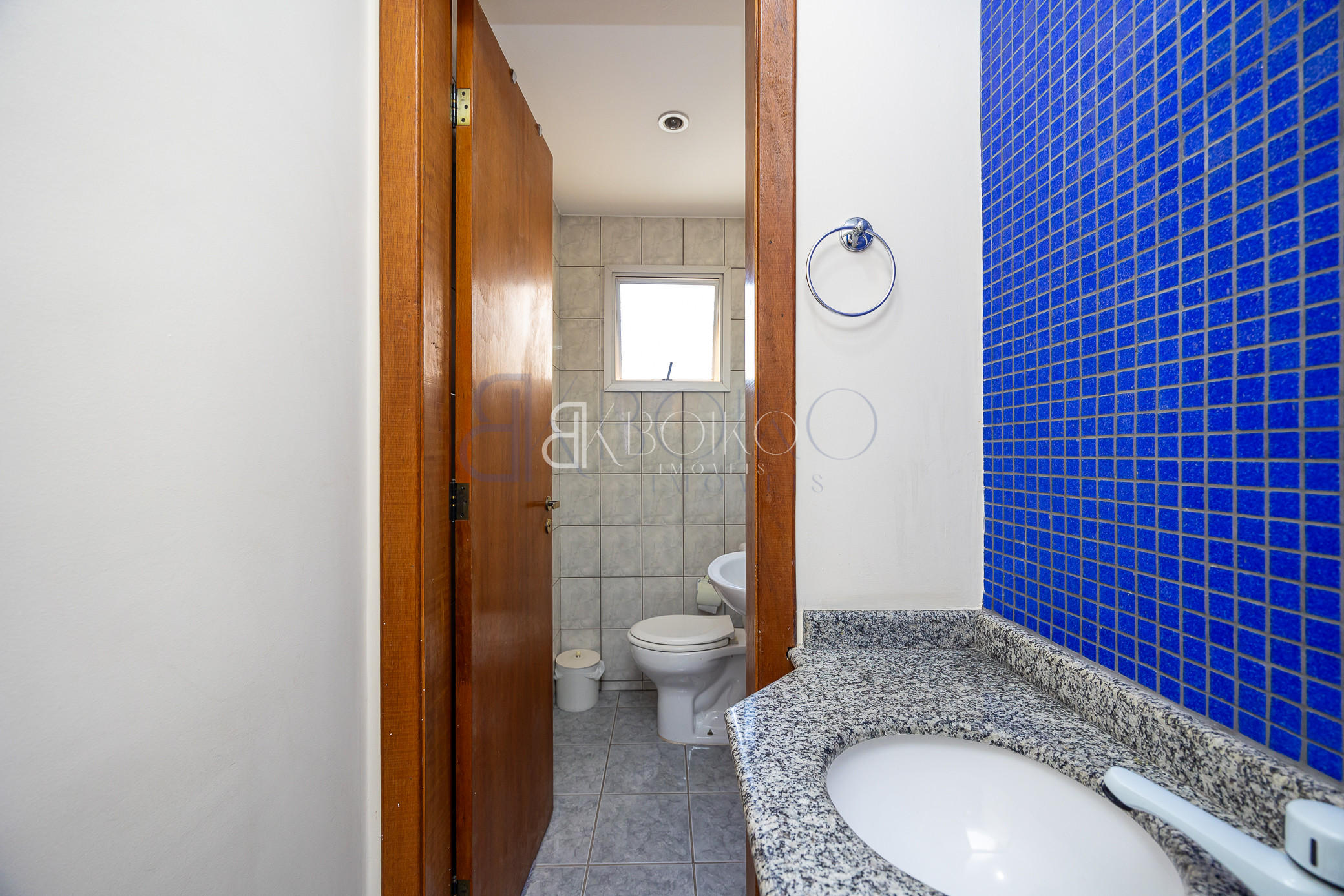 Conjunto comercial no quarto andar, com três salas, banheiro, copa, 1 vaga de garagem.