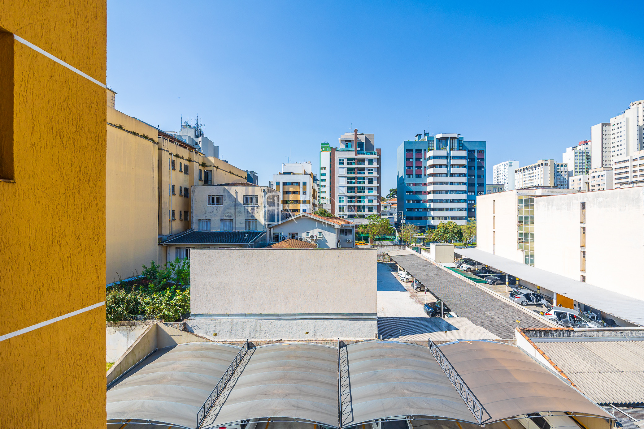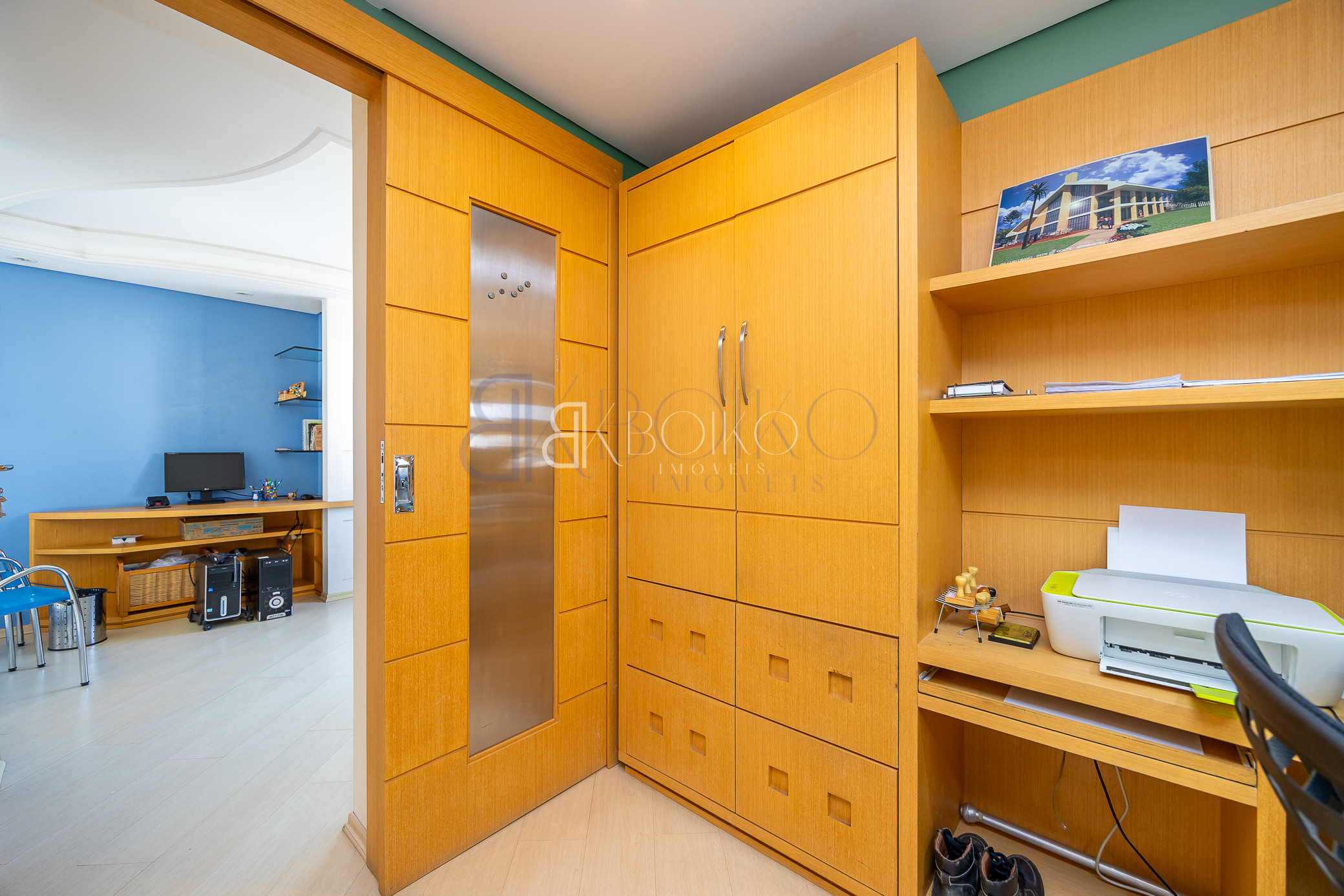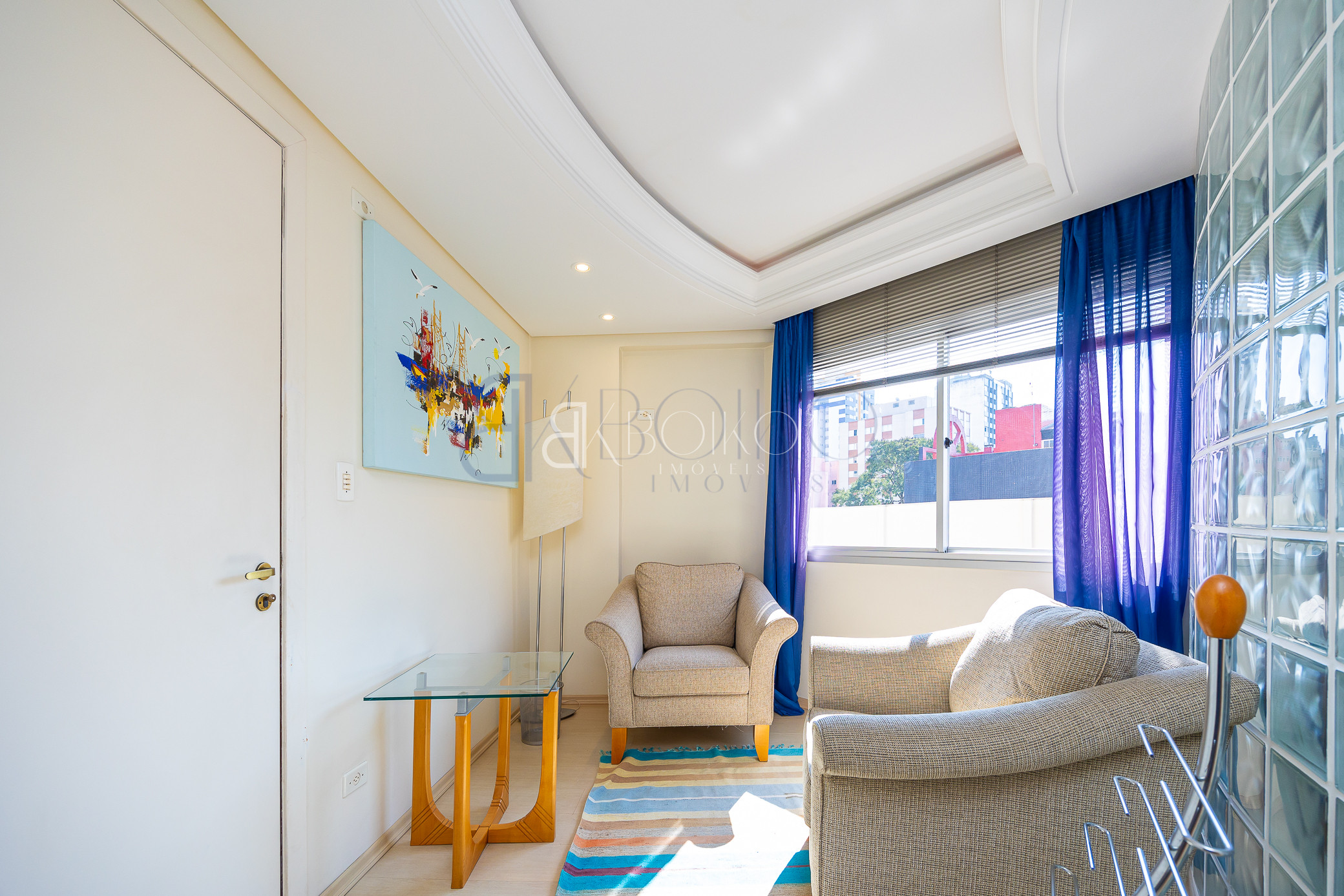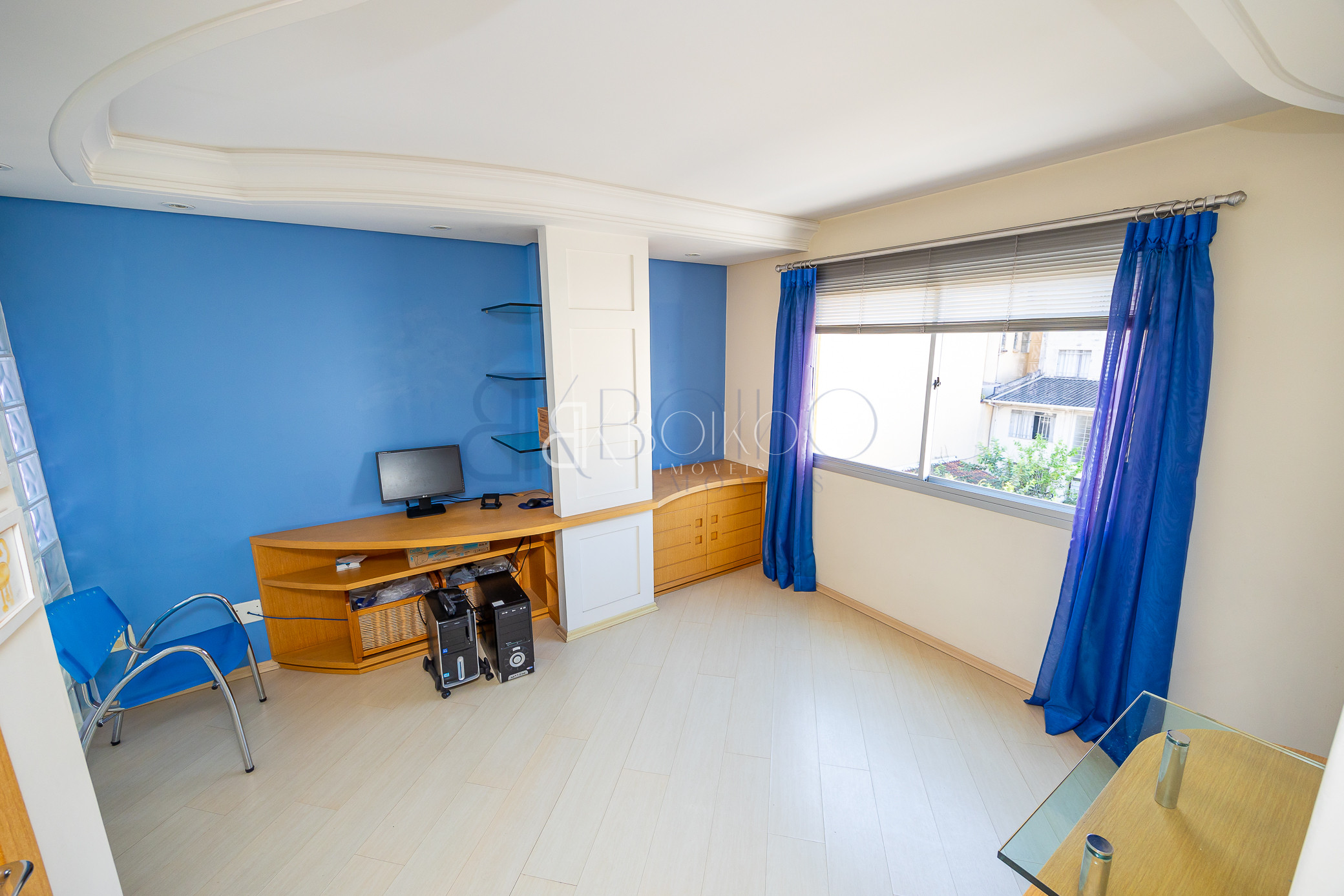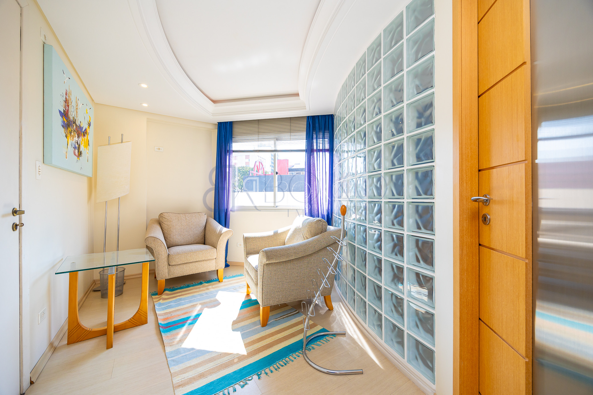 Conjunto comercial no quarto andar, com três salas, banheiro, copa, 1 vaga de garagem.