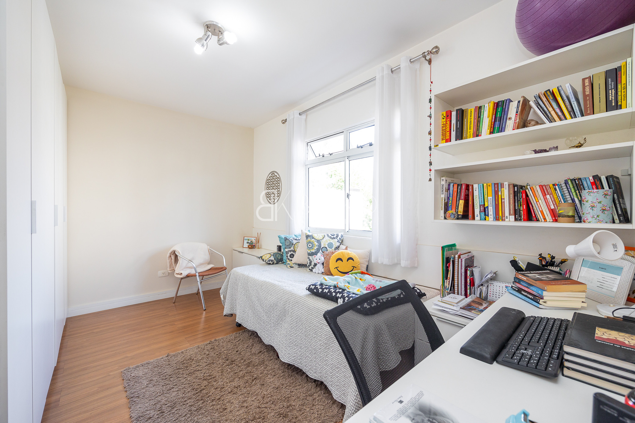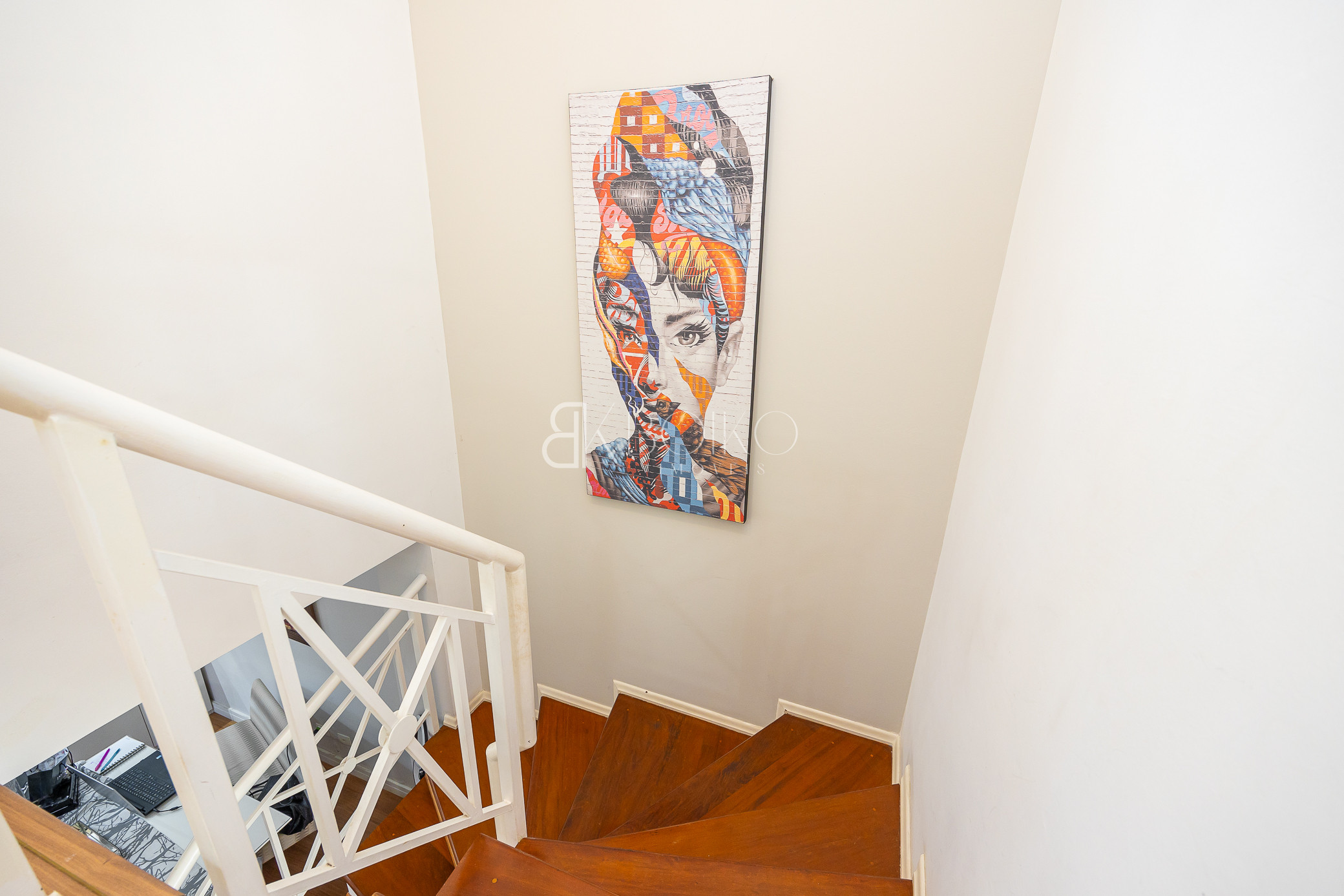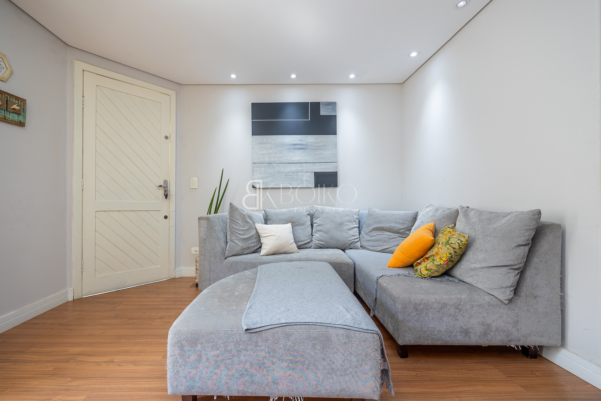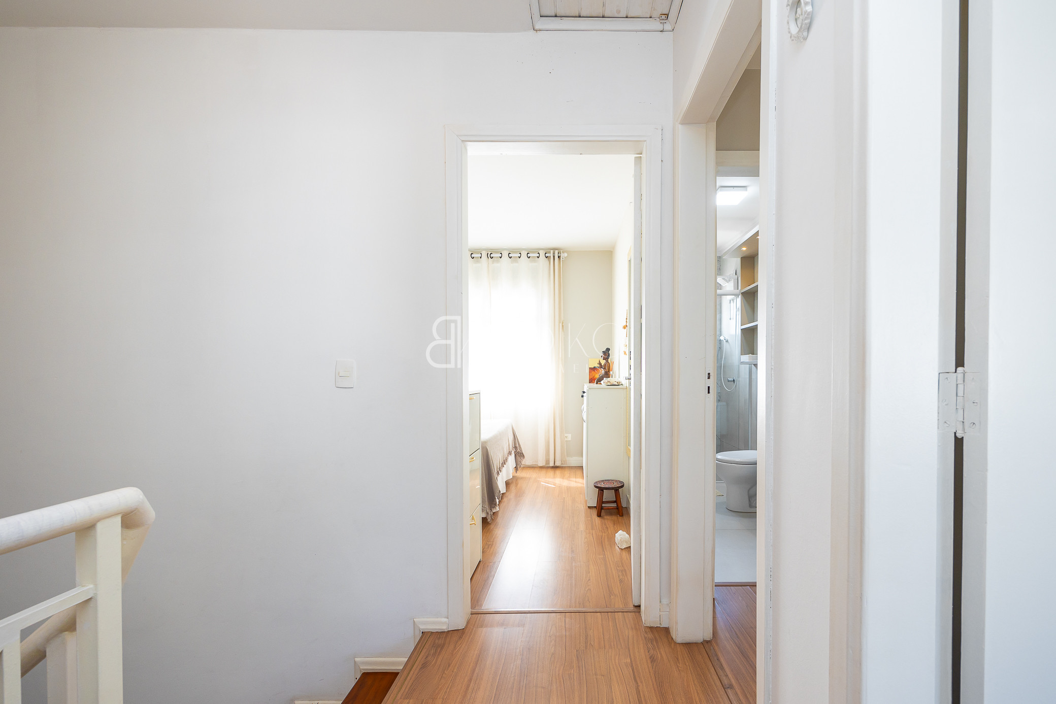 Térreo: Sala para dois ambientes, com ótima ventilação e luminosidade, teto rebaixado em gesso com iluminação, piso laminado, móveis planejados. Cozinha com armários sob medida, lavanderia com armários, espaço para jardim, escada em madeira.